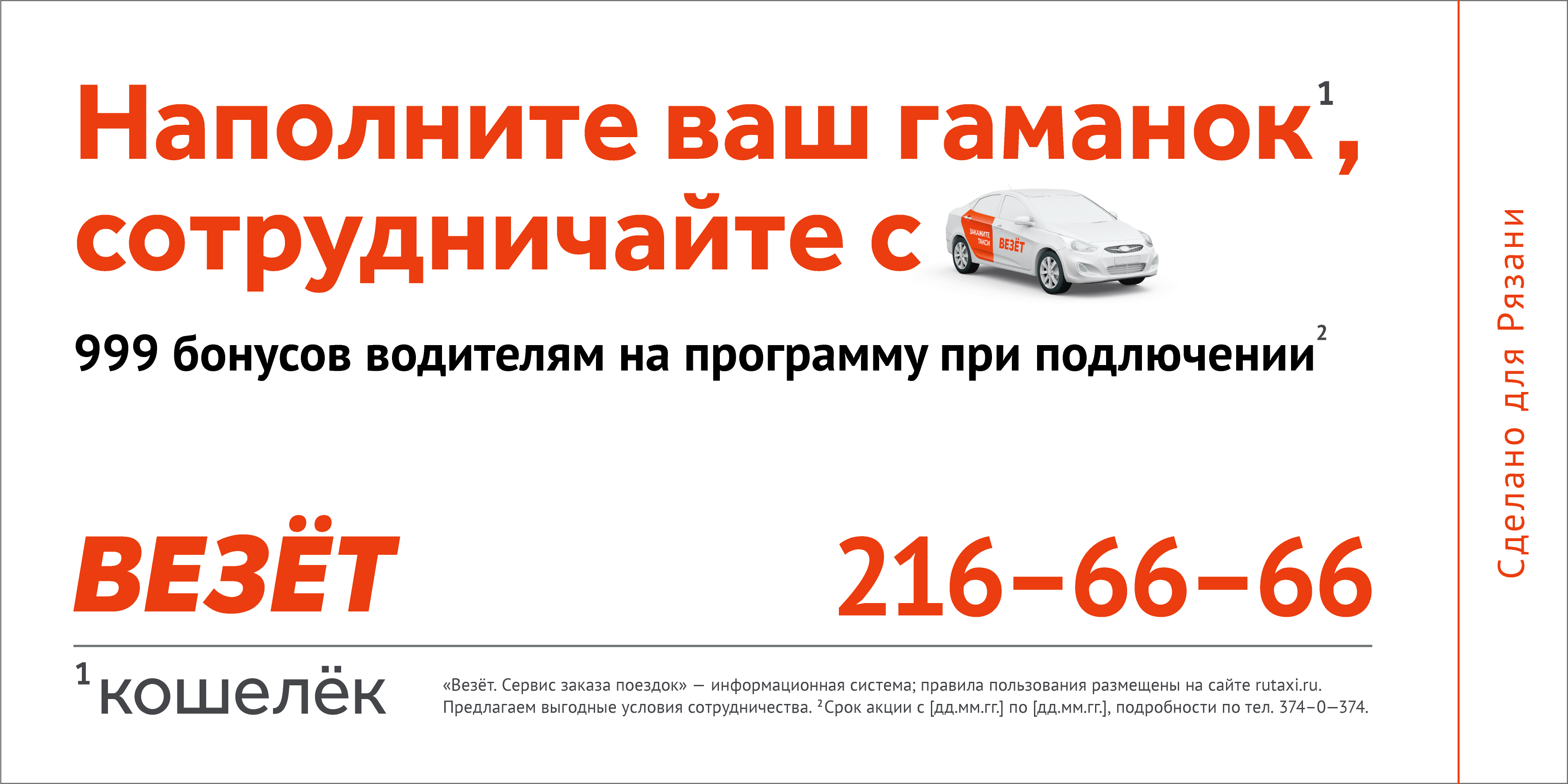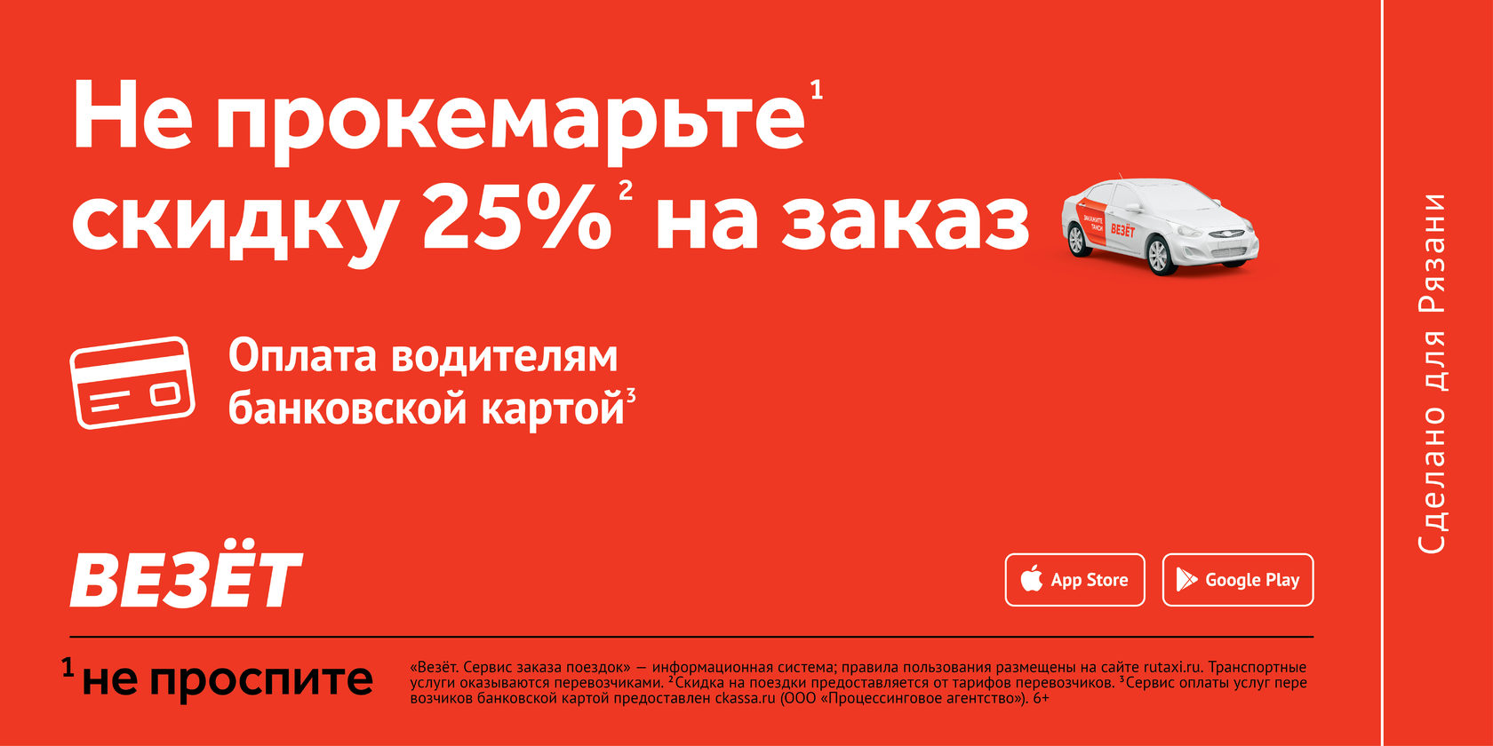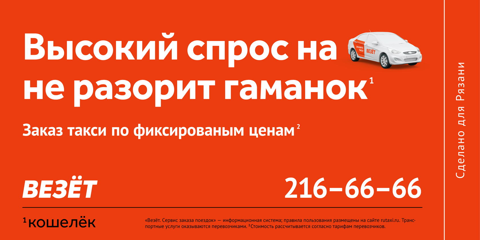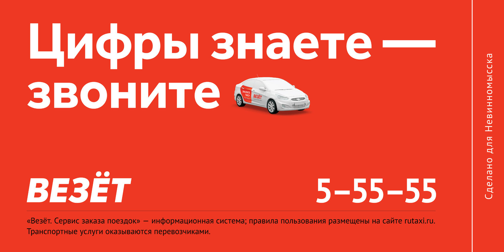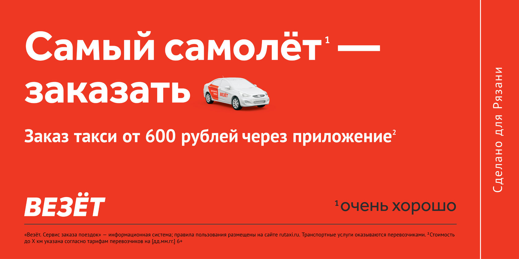 Машина на макете заменяет слова «такси», «поездка», «Везёт».